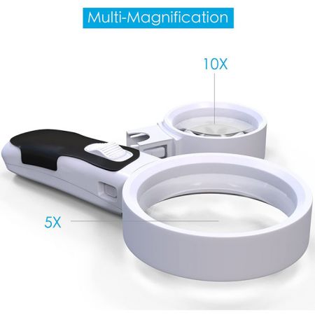 Loupe portative 10X/5X avec lumières LED, ensemble de 2 lentilles éclairées et chiffon de nettoyage